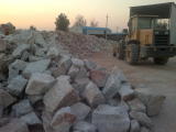 鏟車把石英礦石裝進(jìn)震動(dòng)篩
