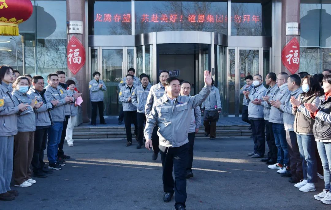 2月17日,大年初八,是春節(jié)后開工首日,道恩集團舉行甲辰龍年新春團拜暨開工會議。董事長、總裁于曉寧率班子成員深入總部駐地、產(chǎn)業(yè)園區(qū),向廣大干部員工送去新春的祝福和美好的祝愿,勉勵大家以飽滿的熱情、昂揚的斗志、充足的干勁高質(zhì)量完成全年各項目標(biāo)任務(wù)。