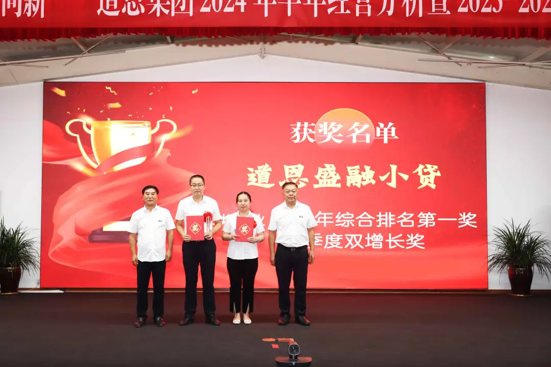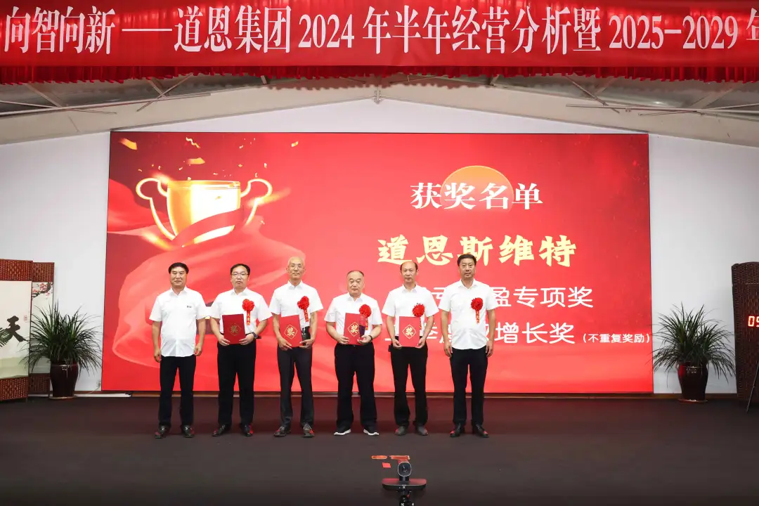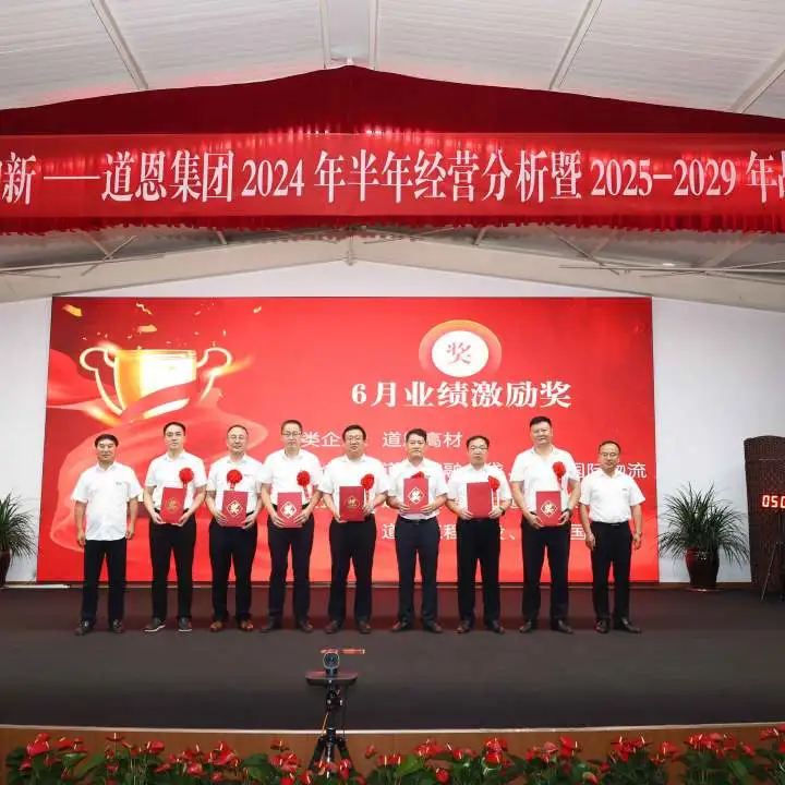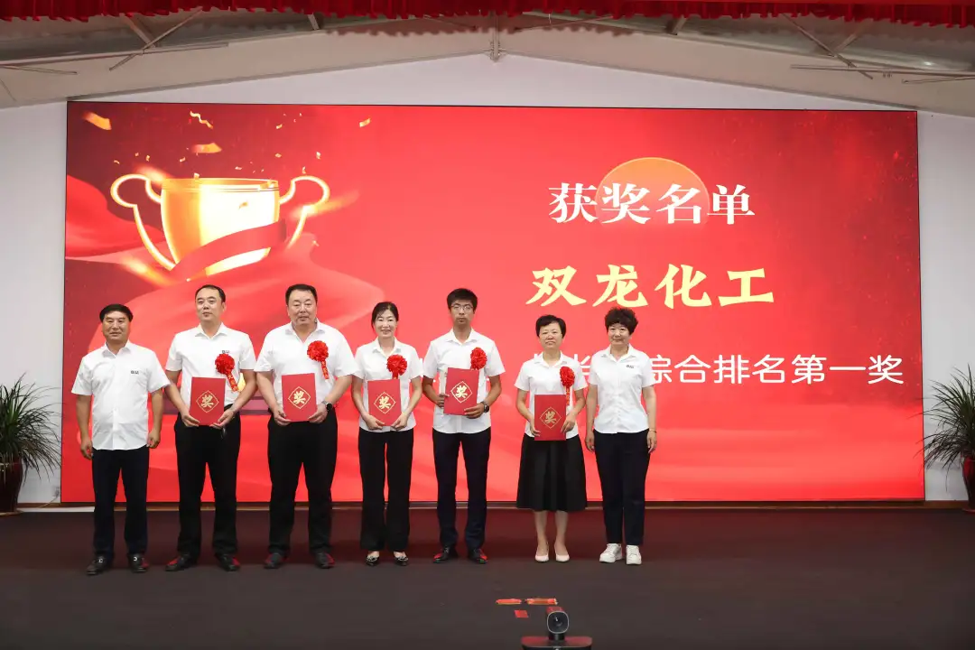 會議公布了安全生產活動月優勝獎、6月業績激勵獎、效益創優獎,雙增長獎、扭虧增盈獎、綜合排名第一獎、服務指導管理考核獎。道恩股份母公司、道恩盛融小貸公司、道恩英德爾公司、雙龍化工公司榮獲上半年綜合排名第一獎。