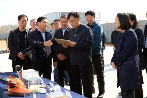 在視察現場,道恩集團董事長、總裁于曉寧匯報了該項目有關情況,以及產業鏈、產品鏈和企業鏈打造情況。視察組在聽取了產品性能、應用領域、行業地位和未來發展等有關情況匯報后,對道恩高質量發展取得的成果給予了充分肯定。