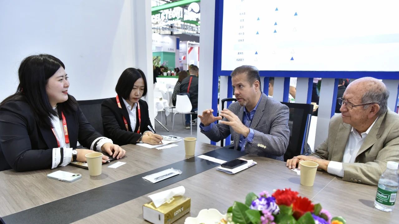 在參展現場,“一藍一白,藍白互映”的主題海報格外吸睛,《環保賦能鈦精彩》宣傳片講述著道恩“清潔生產、綠色發展”的故事,工作人員悉心為新老客戶講解產品性能、應用推廣等情況。首日來訪的客戶不乏洋紫荊、新東方、坂田油墨、天津新宇等知名客戶,或技術交流、或約定互訪、或索樣測試、或深化合作,“對道恩產品及服務非常滿意,希望加大鈦白粉的采購量!”歐洲某客戶表示。
