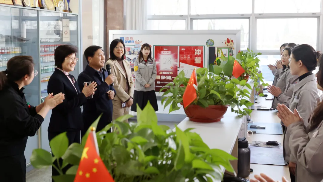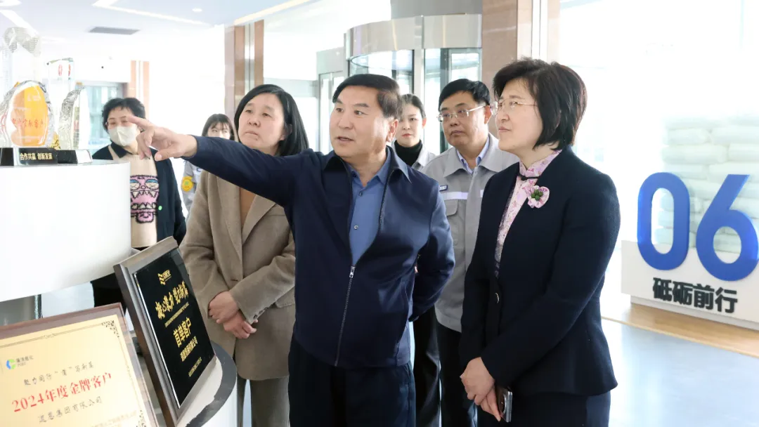 在道恩集團總部大廳,李少娜主席聽取了有關(guān)企業(yè)發(fā)展、產(chǎn)業(yè)布局、行業(yè)地位、科技創(chuàng)新及社會責(zé)任等情況介紹,對企業(yè)高質(zhì)量發(fā)展成果表示贊賞,特別肯定了女職工在科技創(chuàng)新、管理提升等關(guān)鍵崗位發(fā)揮的“半邊天”作用。