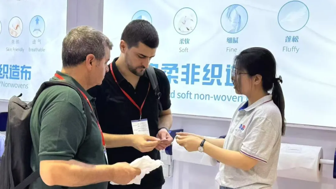 參展期間,來自越南、土耳其、馬來西亞等地的海外客戶,對道恩斯維特公司高端錦柔Bico-L3新品很感興趣,表示展會結束后加強溝通交流,推進業務進展。國內新老客戶紛紛來到錦柔系列新品體驗區,排隊親手測試超細旦產品手感。該公司副董事長慎張飛、總經理鄒秉桓與寶潔、金佰利等核心客戶深入交流,尋求共識與合作,與近10家客戶達成合作意向,讓“打造七個高端、做實四個核心”的指導思想進一步落地見效。
