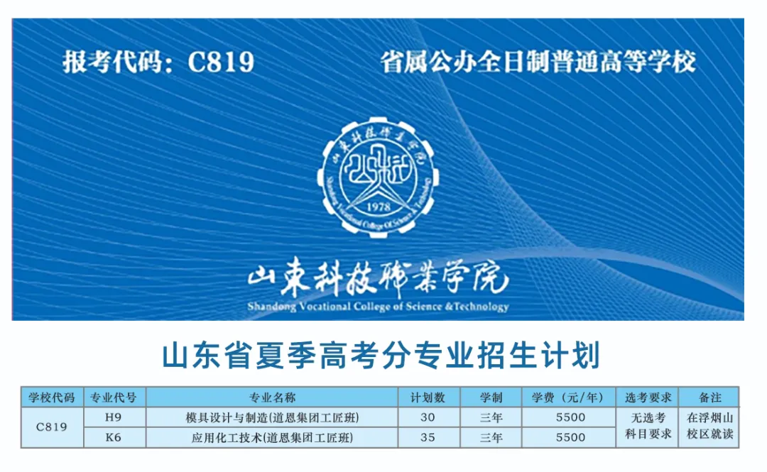 2025年,道恩集團與山東科技職業(yè)學(xué)院達成深度合作,首次推出道恩工匠班并正式啟動招生工作,為莘莘學(xué)子搭建起一座通往職業(yè)夢想的橋梁。其中,模具設(shè)計與制造(專業(yè)代碼:C819H9)、應(yīng)用化工技術(shù)(專業(yè)代碼:C819K6),誠邀廣大學(xué)子報考!