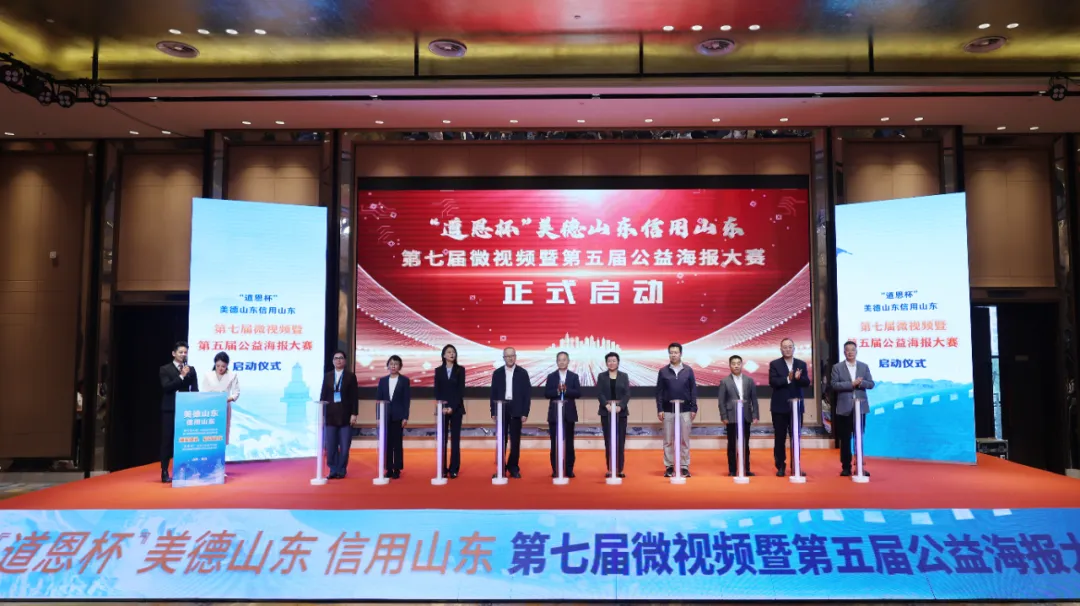 山東省委宣傳部、省發(fā)展改革委、中國(guó)人民銀行山東分行有關(guān)領(lǐng)導(dǎo),龍口市委副書記、市長(zhǎng)盧一男,道恩集團(tuán)副總裁宋慧東出席活動(dòng)并致辭。與會(huì)領(lǐng)導(dǎo)為獲獎(jiǎng)單位和個(gè)人頒獎(jiǎng),共同啟動(dòng)“道恩杯”美德山東信用山東第七屆短視頻暨第五屆公益海報(bào)大賽。