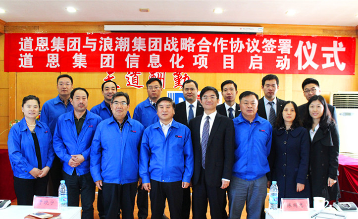 10月21日,道恩集團與浪潮集團簽署戰略合作協議,正式啟動信息化建設項目。道恩集團董事長、總裁于曉寧,浪潮集團副總裁陳明忠,以及雙方有關代表共同見證了整個簽約暨啟動儀式。