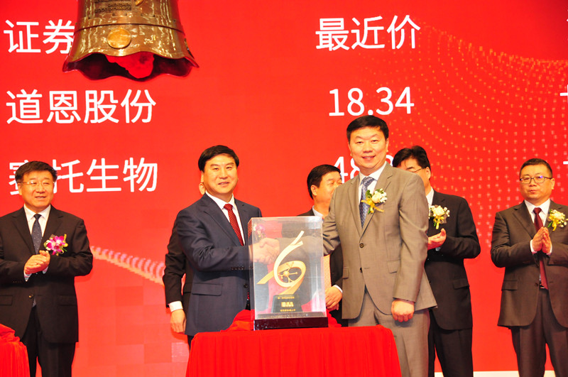 道恩股份成功掛牌上市,這是公司發展史上又一個重要的里程碑。“道恩股份將以上市為契機,利用資本市場機制進一步擴大產品生產規模,增強市場競爭力,實現企業發展壯大,成為熱塑性彈性體行業的引領者,打造世界級高分子材料研發制造基地。”道恩股份董事長于曉寧表示,將致力于搭建高端平臺、聚集高端人才、研發高端產品,把道恩股份打造成一家令國人驕傲的民族品牌企業,以更加優異的業績回報投資者、回報社會。
