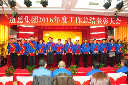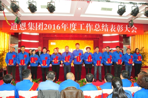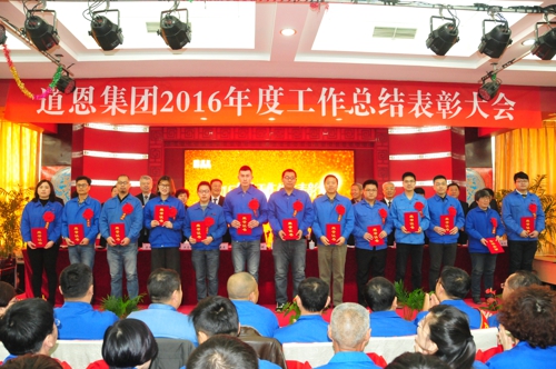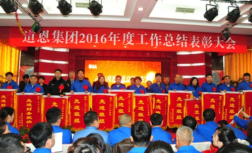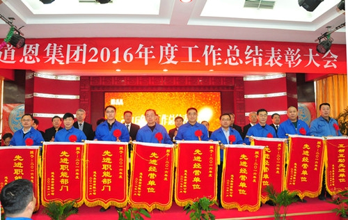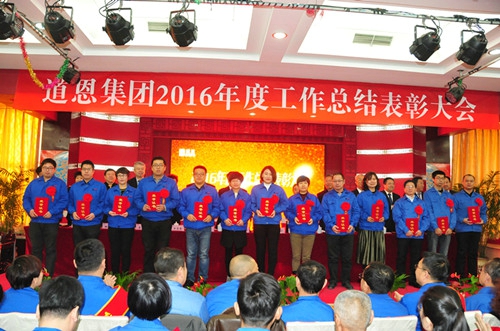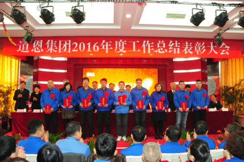 1月24日上午,道恩集團2016年度總結(jié)表彰大會在道恩湖畔酒店三樓多功能廳隆重舉行。集團公司董事長于曉寧、總裁索延輝出席大會并發(fā)表講話。