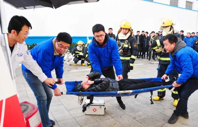 此次演練由龍口經(jīng)濟(jì)開發(fā)區(qū)管委統(tǒng)一部署,道恩集團(tuán)聯(lián)合龍口市消防大隊(duì)電廠路消防中隊(duì)、龍礦醫(yī)院急救中心共同開展。來自開發(fā)區(qū)管委、龍港集團(tuán)、龍礦集團(tuán)、華電龍口、海洋石油船舶中心等單位領(lǐng)導(dǎo)和企業(yè)代表60余人前來觀摩。