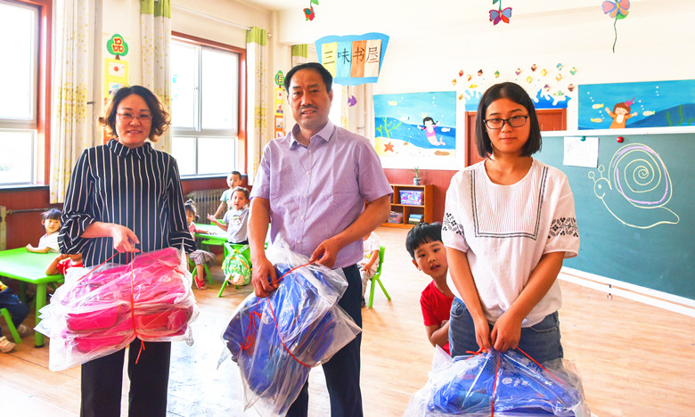 5月30日下午,道恩集團副總裁王可友將愛心書包送到了北皂前村幼兒園和小孫家幼兒園。孩子們收到特殊的節(jié)日禮物,十分開心,稚嫩的臉上洋溢著幸福的笑容。