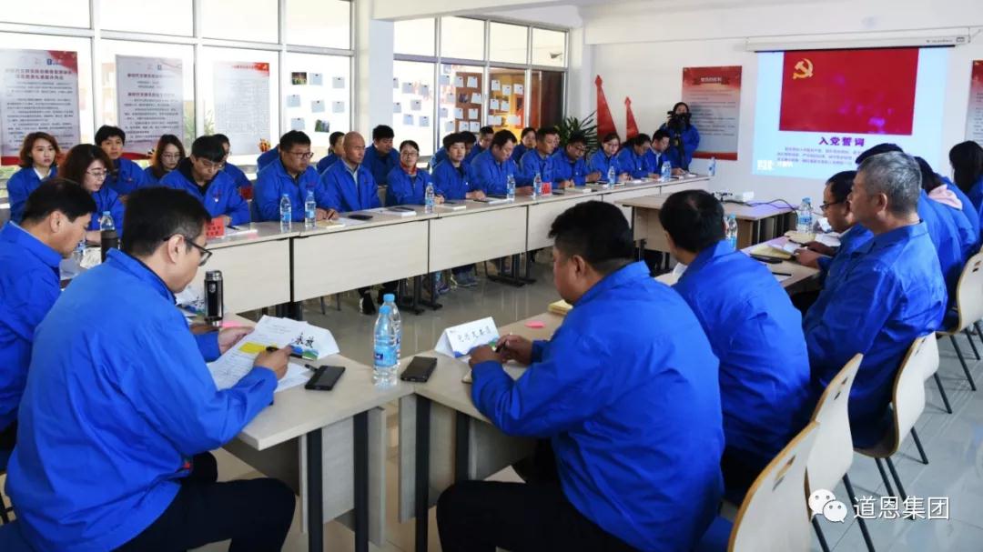 10月19日下午,道恩集團(tuán)黨總支在道恩馨園黨員活動室組織召開“不忘初心,牢記使命”主題黨日活動,道恩集團(tuán)董事長、龍口市龍港街道興隆莊村黨委書記于曉寧出席活動,黨總支書記王永放主持活動,各支部黨員及入黨積極分子50余人參加活動。