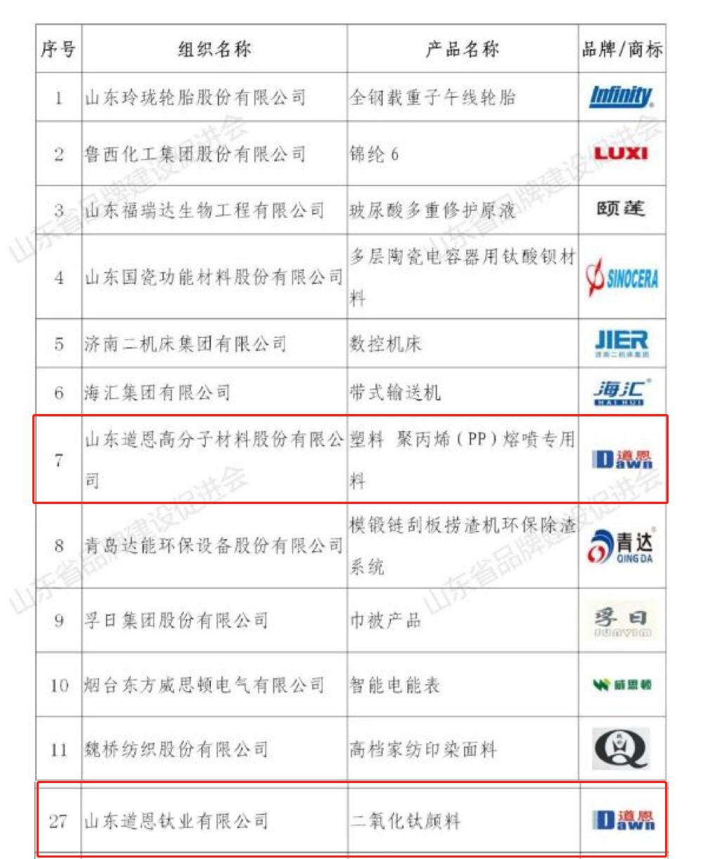高端品質(zhì)成就了具有競(jìng)爭(zhēng)力的道恩品牌。除了此次被認(rèn)定為山東知名品牌的聚丙烯(PP)熔噴專用料、二氧化鈦顏料(金紅石型鈦白粉)外,此前,道恩股份的“改性塑料”和“熱塑性硫化橡膠TPV”兩種產(chǎn)品被認(rèn)定為山東知名品牌(產(chǎn)品),道恩旗下榮暢物流公司的“物流服務(wù)”榮獲山東知名品牌(服務(wù))。至此,道恩5個(gè)產(chǎn)品或服務(wù)成為山東知名品牌。