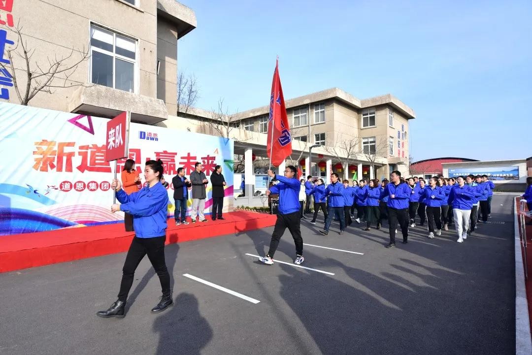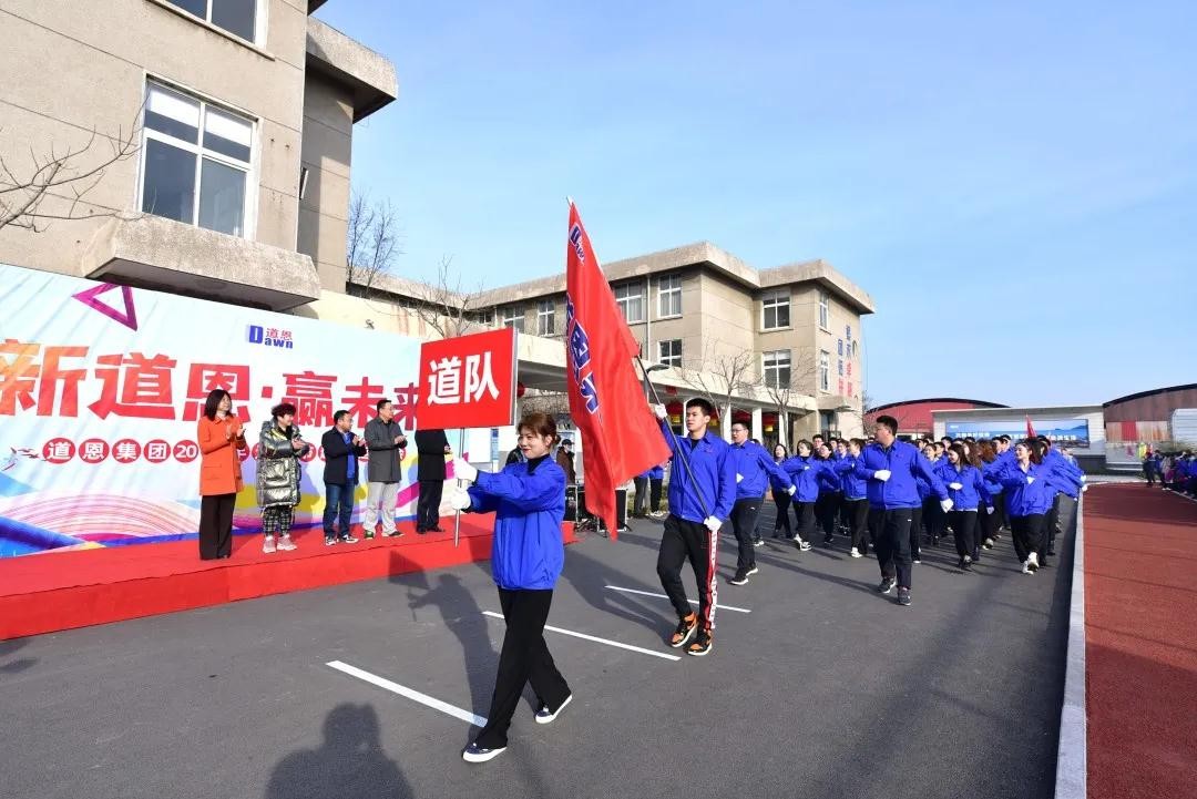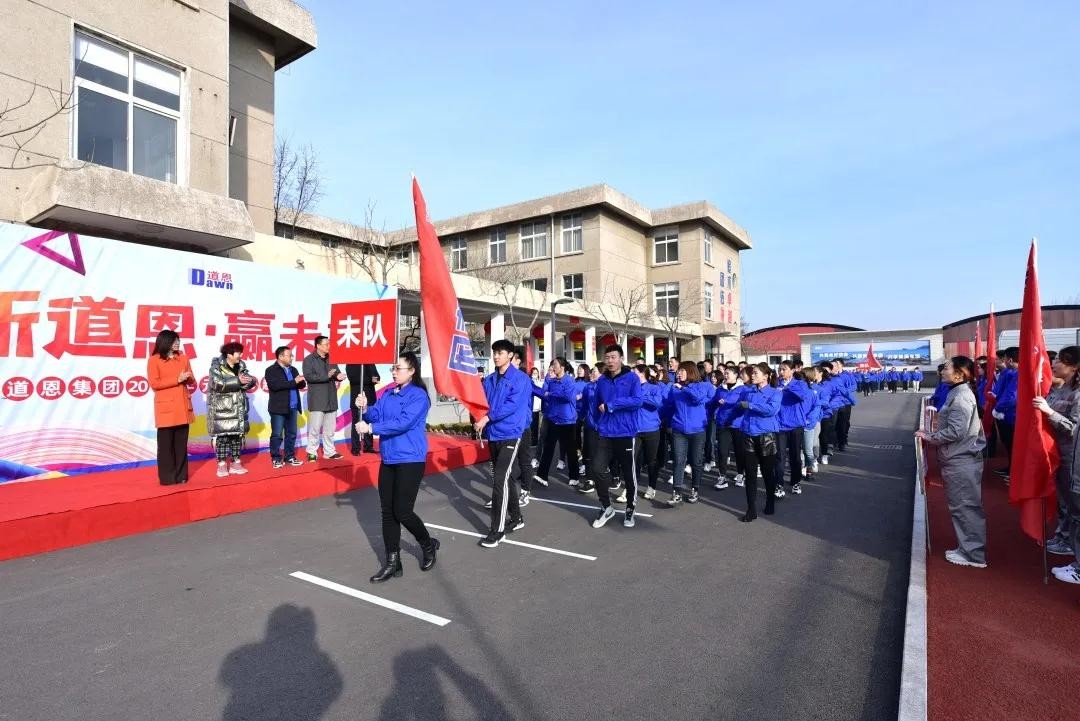 是日上午8時30分,由各部門、單位組成的“新”“道”“恩”“贏”“未”“來”6支代表隊士氣昂揚,依次通過主席臺接受檢閱,整齊的步伐、響亮的口號,彰顯了道恩人嶄新的精神風貌。道恩集團常務副總裁肖輝宣布趣味運動會正式開始。