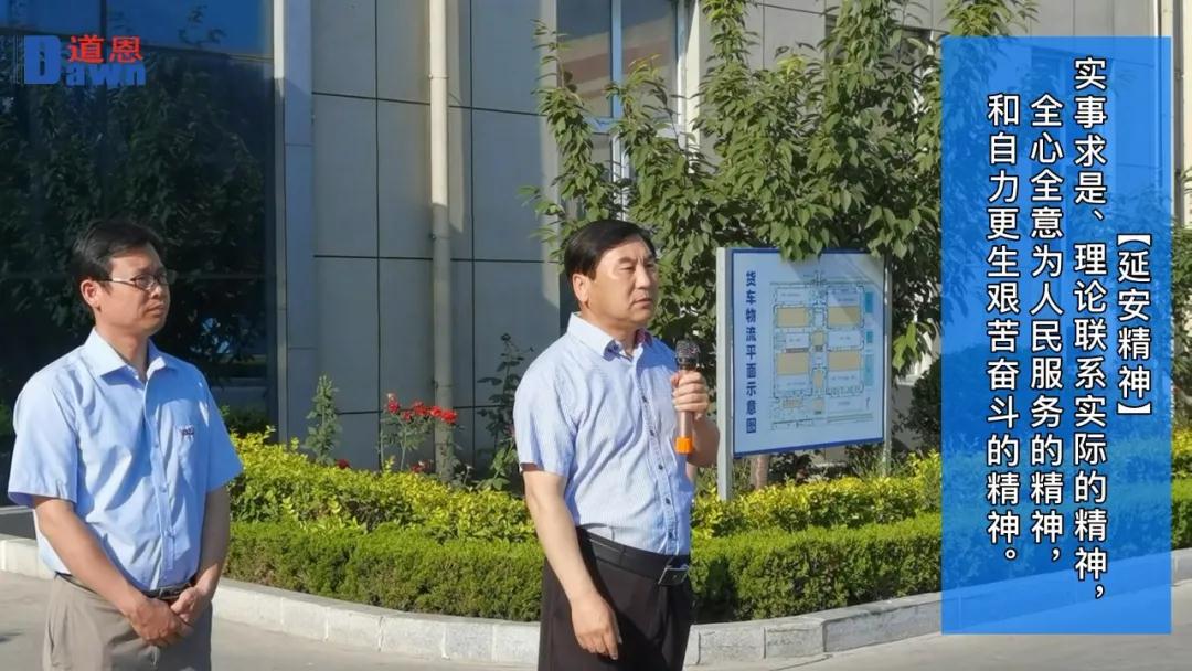 此前的6月23日開幕式上,道恩集團董事長、總裁于曉寧在動員講話時指出,各部門、單位要充分發揚“三種精神”(紅船精神、延安精神和工匠精神),緊緊圍繞“四量一效兩率”(科技含量、質量、產量、銷量、效益、資產負債率、投資回報率)開展經營管理工作。6月24日舉行的道恩集團黨總支主題黨日活動,以于曉寧董事長的動員講話作為教材,教育大家用“三種精神”凝聚起高質量發展的力量。