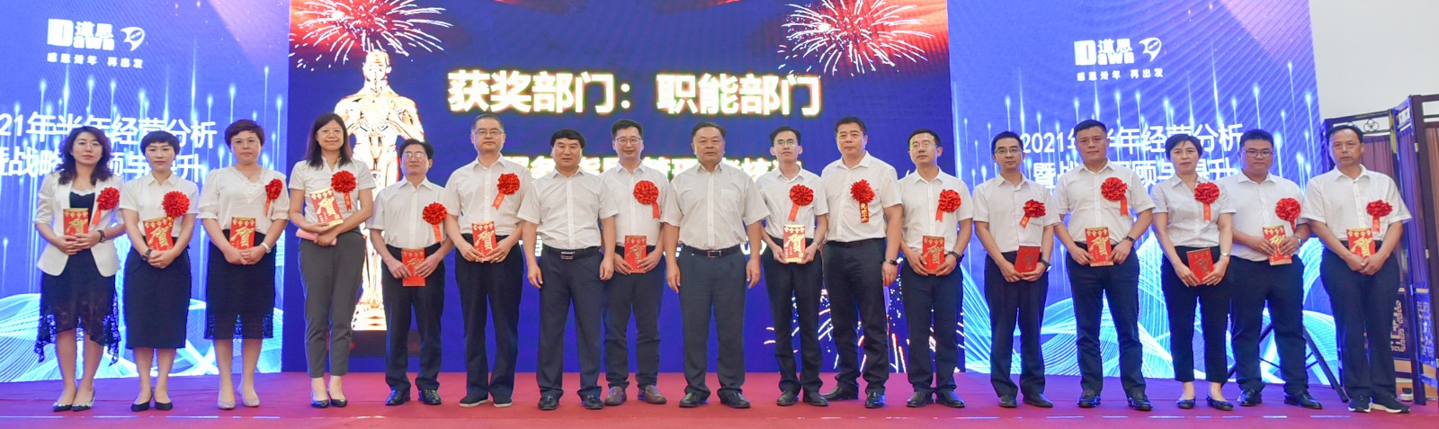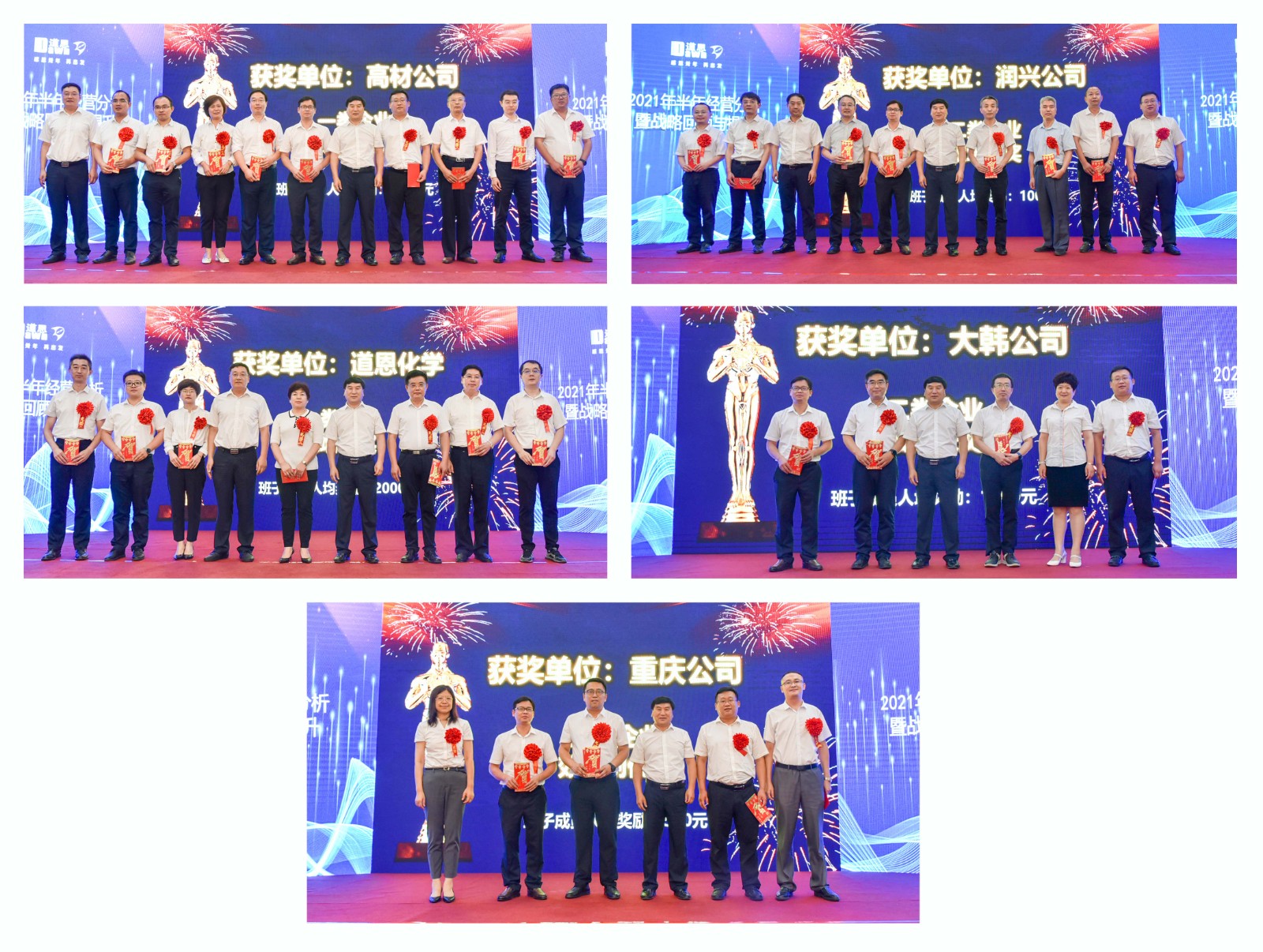 24日上午的經(jīng)營分析會(huì)上,對上半年超額完成經(jīng)營目標(biāo),以及取得季度效益創(chuàng)優(yōu)和季度雙增長獎(jiǎng)的經(jīng)營單位進(jìn)行表彰獎(jiǎng)勵(lì),并對多個(gè)業(yè)績超過歷史最好值的經(jīng)營單位頒發(fā)了超額分享的獎(jiǎng)勵(lì)。道恩集團(tuán)領(lǐng)導(dǎo)班子成員分別為獲獎(jiǎng)單位頒獎(jiǎng),獲獎(jiǎng)單位依次上臺(tái),表達(dá)了對圓滿完成年度經(jīng)營任務(wù)、“十四五”開局必勝的決心和信心,進(jìn)一步濃厚了道恩人干事創(chuàng)業(yè)的豪邁與激情。
