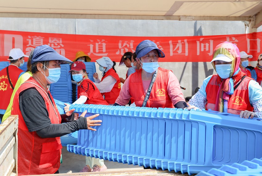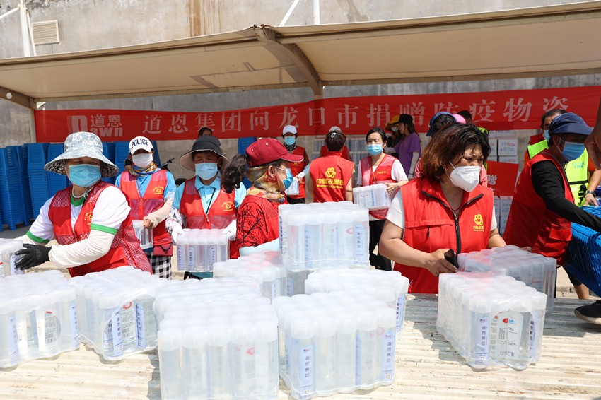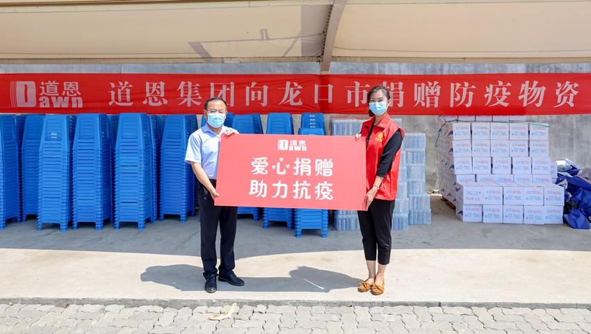 8月6日中午,道恩集團常務副總裁肖輝將防疫物資捐獻給龍口市。“這次道恩捐贈的遮陽棚、塑料凳和礦泉水,都是防疫一線急需的物資。”前來負責接收和發放防疫物資的龍口市婦聯工作人員李幸說,“好人之城,好人同行。愛心企業的溫暖行動,更堅定了我們戰勝疫情的決心和信心。”
