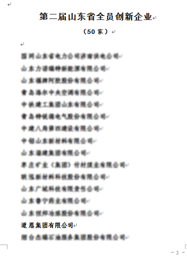 11月12日,山東省總工會公布第二屆山東省全員創(chuàng)新企業(yè)名單,道恩集團榜上有名,標志著企業(yè)全員創(chuàng)新工作成為全省樣板。據(jù)悉,全省僅有50家企業(yè)入圍該名單。