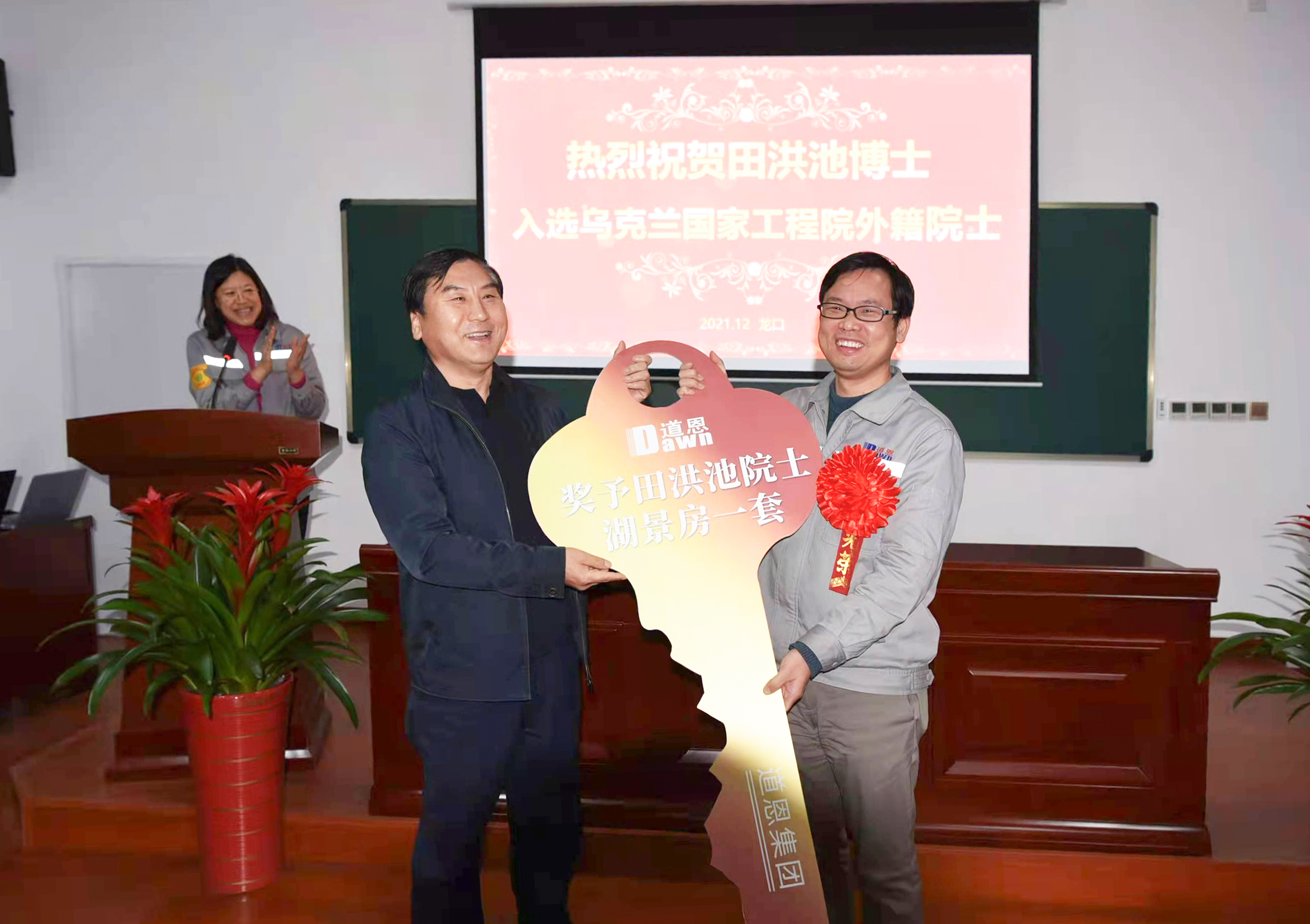 “厚遇”高端人才,道恩積極作為。12月17日下午,道恩集團向烏克蘭國家工程院外籍院士、道恩股份總經理田洪池贈送湖景房1套,這是踐行“選準人、育好人、用對人、留住人、成就人”用人理念的實際行動。