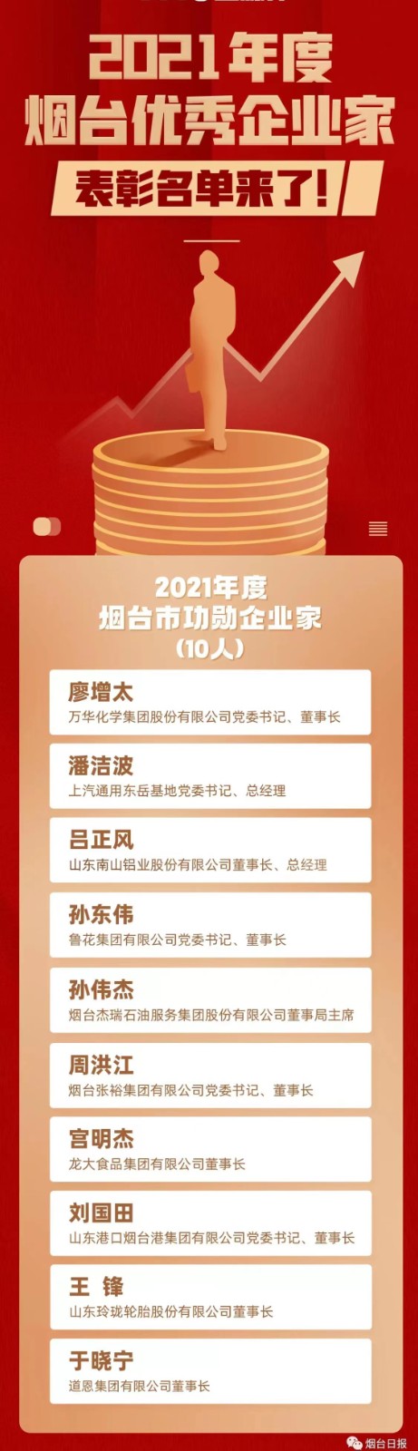 5月5日,煙臺市召開2021年工作總結暨優秀企業家表彰大會,旨在進一步弘揚企業家精神,激發創新創業活力,鼓勵全市廣大企業家提振精氣神、再創新佳績。道恩集團公司董事長、總裁于曉寧榮膺2021年度“煙臺市功勛企業家”,光榮出席會議并在主席臺就座。據悉,這是于曉寧董事長繼榮獲2020年煙臺市功勛企業家后,再一次獲此殊榮。