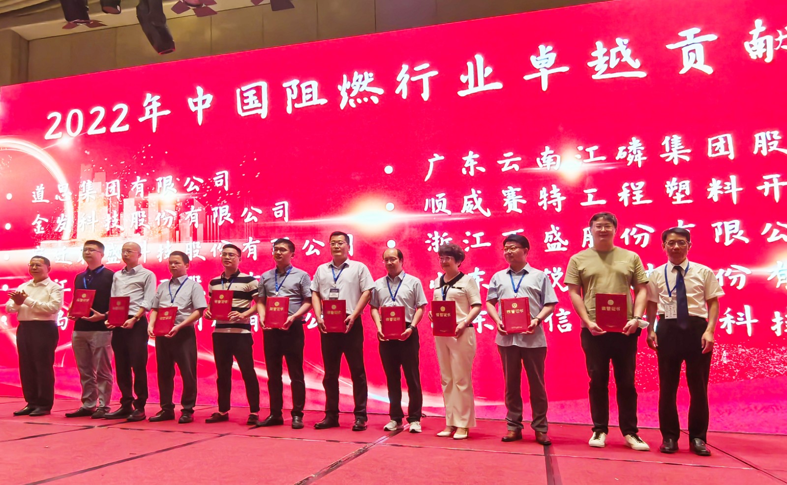 會上,道恩集榮獲2022年中國阻燃行業卓越貢獻企業,道恩集副總裁邱煥玲上臺領獎。于曉寧董事長作為專委會主任,頒發了2022年中國阻燃行業杰出創新企業獎。