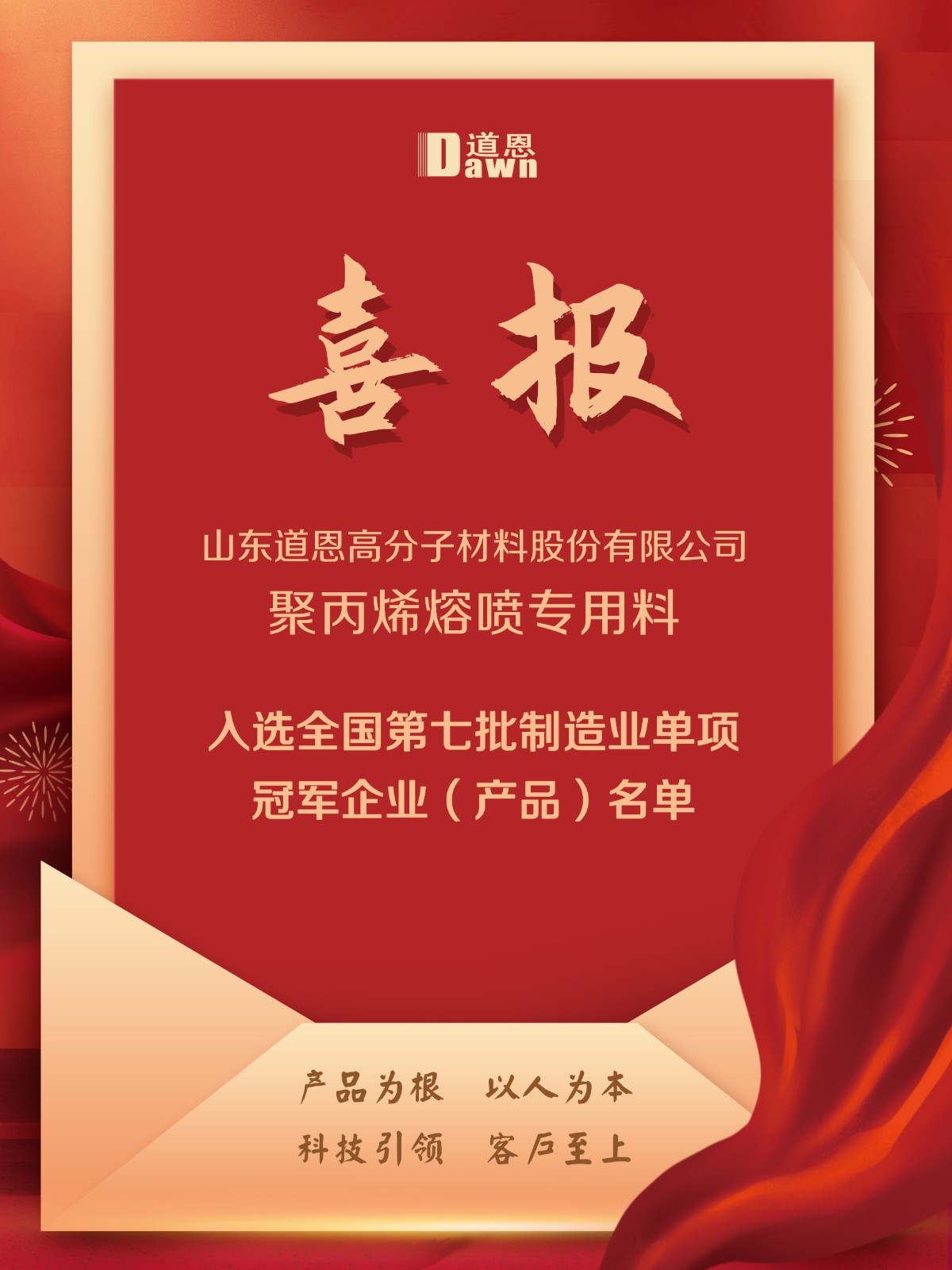 據介紹,這是中國制造業企業的一項重要榮譽,是細分領域的行業制高點,是中國制造核心競爭力的體現。道恩聚丙烯熔噴專用料緣何能獲得“國字號”殊榮?是科技賦能品質。