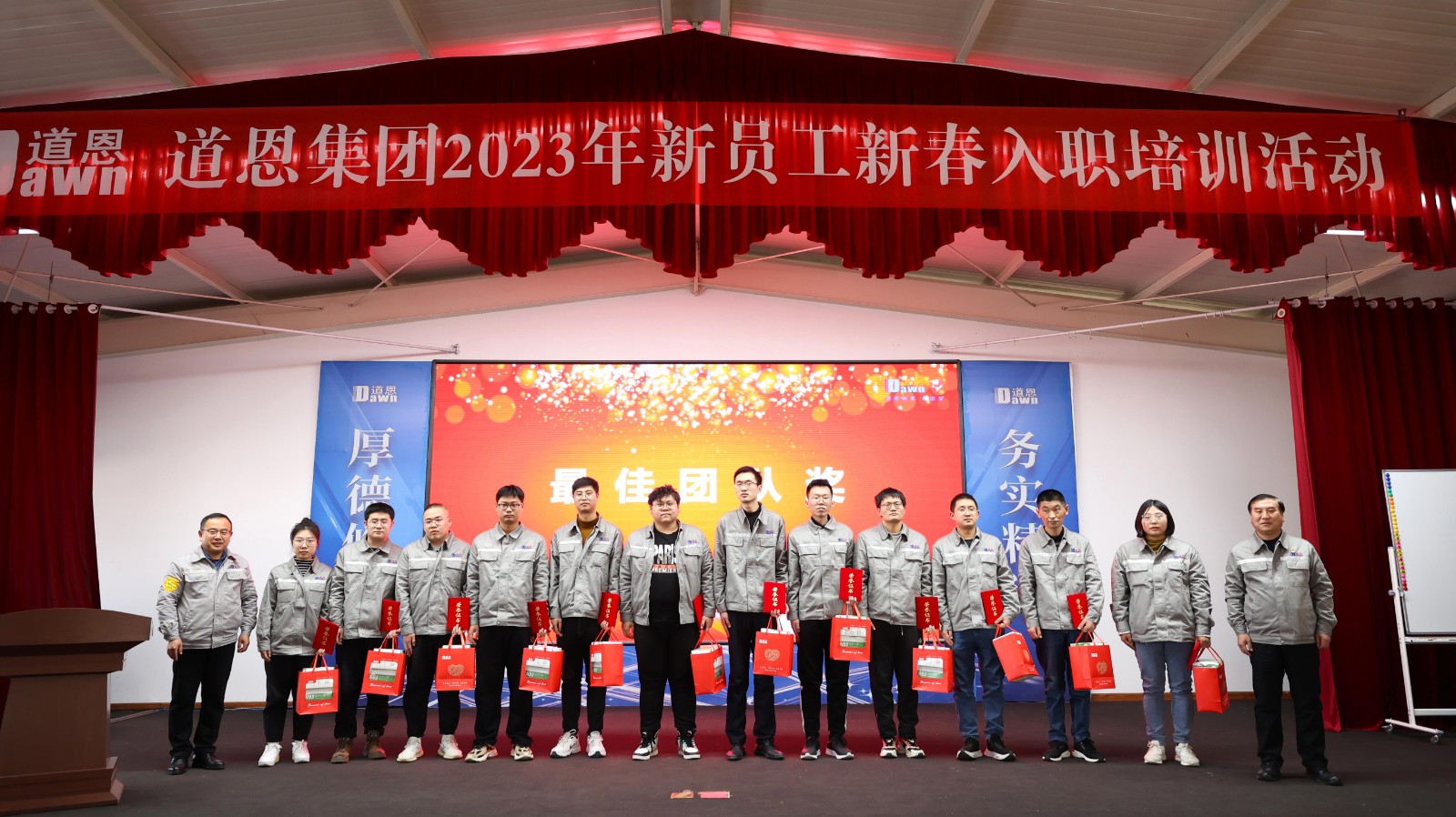 在2月11日的結業(yè)儀式上,新員工代表石夢妍激情發(fā)言,“通過幾天的活動,收獲了感動與激情。”她表示在以后的工作中,要以“靠上、拼上、豁上”的工作精神,踐行“要急、要爭、要搶”的工作作風,在道恩這個廣闊平臺實現(xiàn)自己的人生價值。