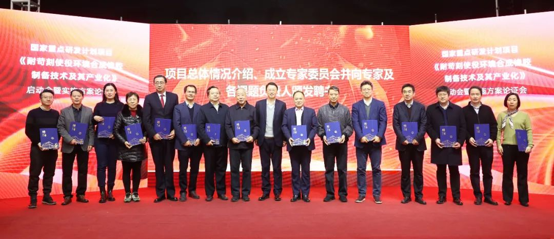會議期間,成立了國家重點研發計劃《耐苛刻使役環境的合成橡膠制備技術及其產業化》項目專家委員會,張立群院士為15位專家及課題負責人頒發了聘書。
