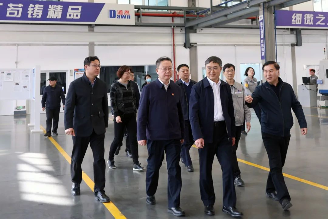 3月9日,煙臺市委常委、組織部部長、統戰部部長高建廣來道恩調研民營經濟統戰工作。煙臺市委統戰部副部長、市工商聯黨組書記胡衛寧等參加調研。龍口市委書記呂波,市委常委、市高端化工產業鏈鏈長趙樹杰,市委常委、統戰部部長、副市長潘蒞;市工商聯主席,道恩集團董事長、總裁于曉寧陪同調研。