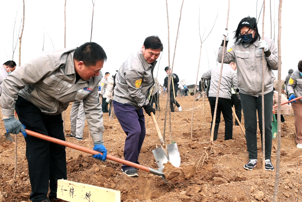 “我們義務植樹的成活率逐年提升,2022年喬木成活率達98%,灌木成活率在91%以上。”活動開始前,道恩工程建設公司園林部有關負責人匯報近年來植樹活動的成效,并詳細介紹了注意事項、種植方法和栽種要求。集團公司戰略運營管理部有關負責人強調了安全注意事項。參加活動的干部員工共同喊出道恩“三共”信念,隨即投入到熱火朝天的植樹活動中。