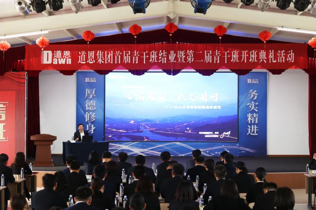 4月22日,道恩集團首屆青干班結業暨第二屆青干班開班典禮在道恩商學院舉行,道恩集團董事長、總裁,道恩商學院院長于曉寧出席活動并授課。集團公司領導班子成員,各部門部長、經營單位總經理及人事行政總監,兩屆導師、青干班學員參加活動。駐外經營單位通過視頻參加活動。