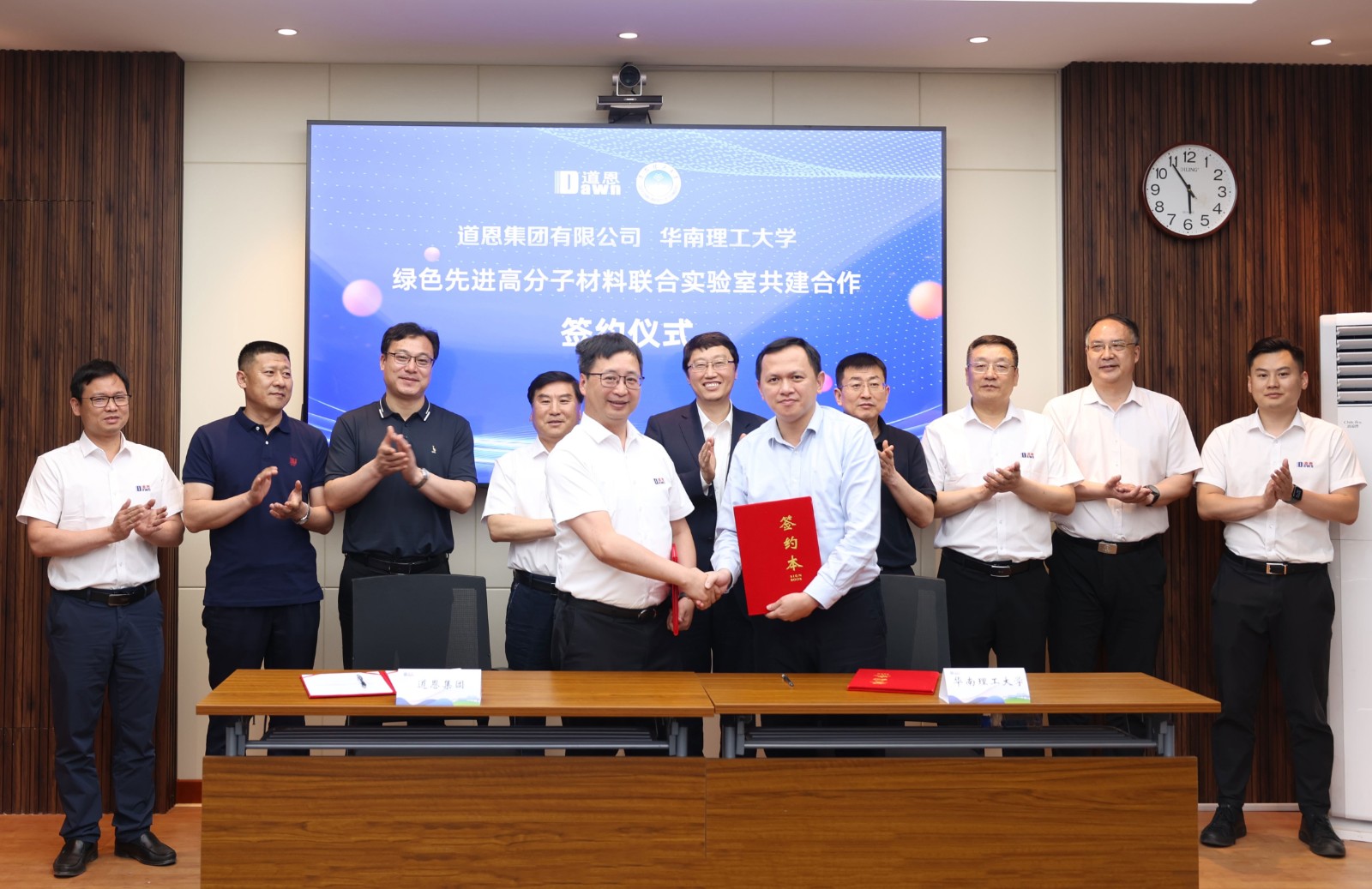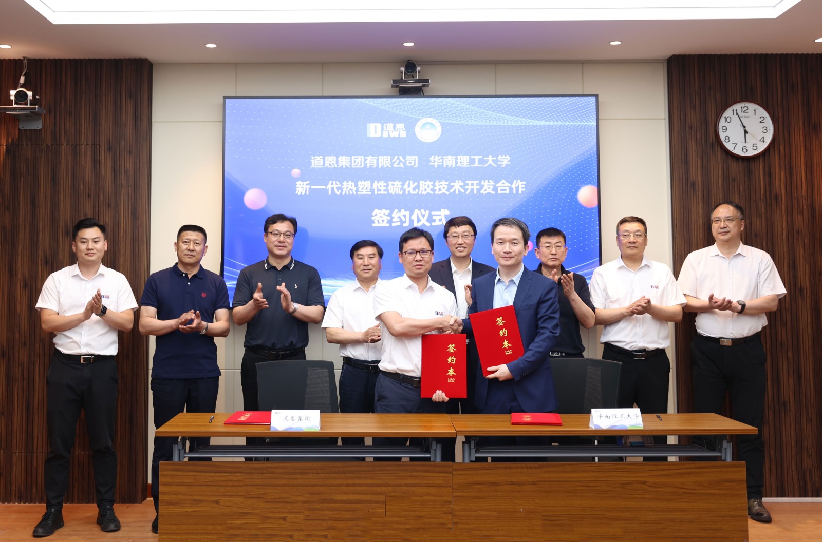 5月24日下午,道恩集團與華南理工大學在位于山東龍口的道恩總部舉行簽約儀式,就共建綠色先進高分子材料聯合實驗室、開發新一代熱塑性硫化膠技術、設立道恩新材料獎學金達成合作,掀開校企共贏發展新篇章。華南理工大學校長、中國工程院院士張立群,龍口市委常委、高端化工產業鏈鏈長趙樹杰,道恩集團董事長、總裁于曉寧出席活動并致辭。