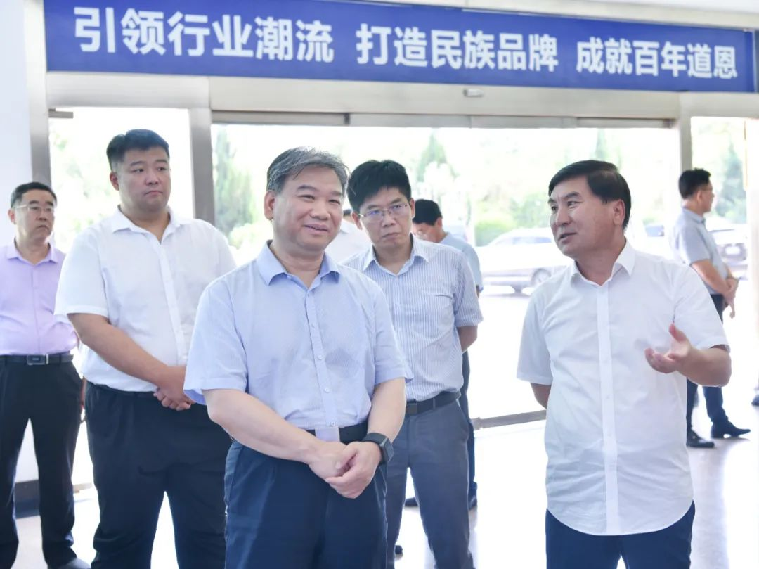 9月7日,國家工信部中小企業局局長梁志鋒一行,來道恩調研特色產業集群和專精特新“小巨人”情況。山東省工信廳二級巡視員吳炎,煙臺市工信局黨組書記、局長張宏,龍口市政府副市長趙靜,市政協副主席、工信局局長霍樹春,道恩集團董事長、總裁于曉寧陪同調研。